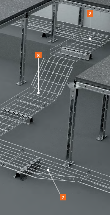 Система проволочных кабельных лотков, предлагаемая компанией «СТАНДАРТ- ИНЖИНИРИНГ» – это комплексная система, предназначенная для прокладки кабельной инфраструктуры, включающей в себя кабельные трассы систем связи, пожарной и охранной сигнализации, КИПиА преимущественно внутри помещений.Благодаря наличию монтажных элементов заводского изготовления, можно выполнять конструкции трасс с необходимыми поворотами и разветвлениями в горизонтальных и вертикальных плоскостях.