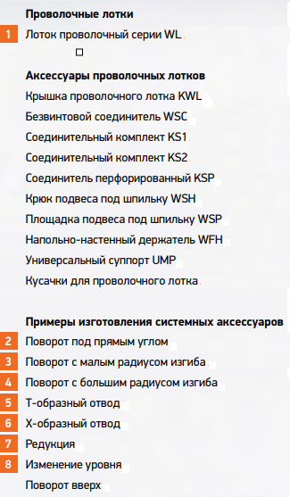 Для проволочных лотков выпускается следующая номенклатура изделий: